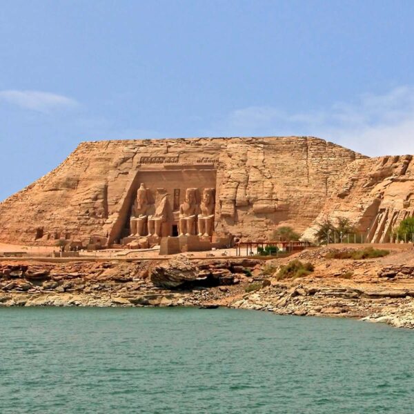 Abu Simbel is an ancient temple complex located in Aswan, Egypt. The complex was originally built during the reign of Pharaoh Ramesses II in the 13th century BC. The complex consists of two temples: the Great Temple of Ramesses II and the Small Temple of Nefertari.